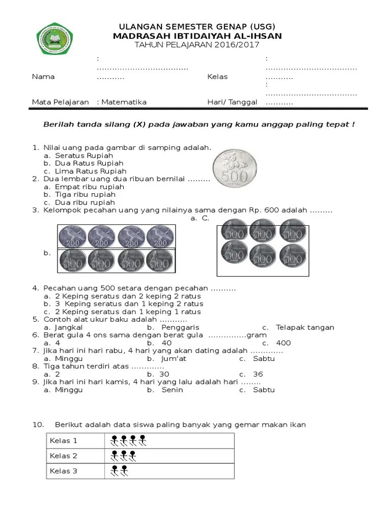 Berikut adalah beberapa contoh soal matematika yang dapat membantu anak belajar matematika: Buku latihan soal tematik sd kelas 2 semester genap incer kode. Soal matematika kelas 2 sd semester 1 umumnya terdiri dari soal bilangan cacah, penjumlahan, pengurangan, hingga soal cerita. Penilaian akhir semester (pas) adalah kegiatan yang dilakukan untuk mengukur pencapaian kompetensi peserta didik di akhir semester genap. Saya pintar matematika untuk sd/mi kelas 4 buku soal latihan semester 1&2.